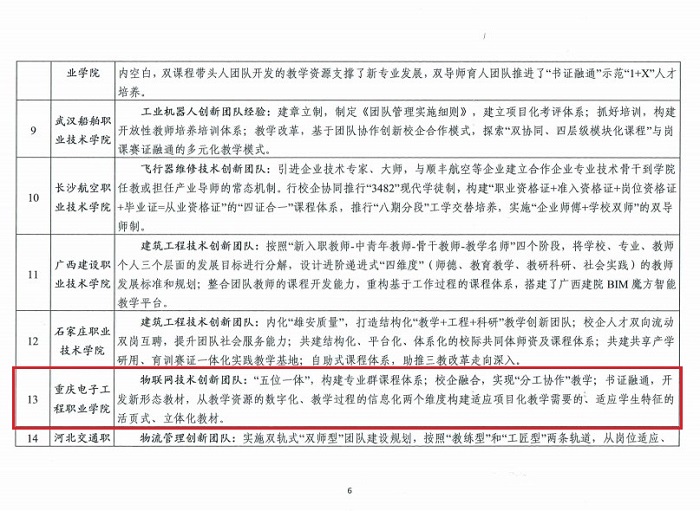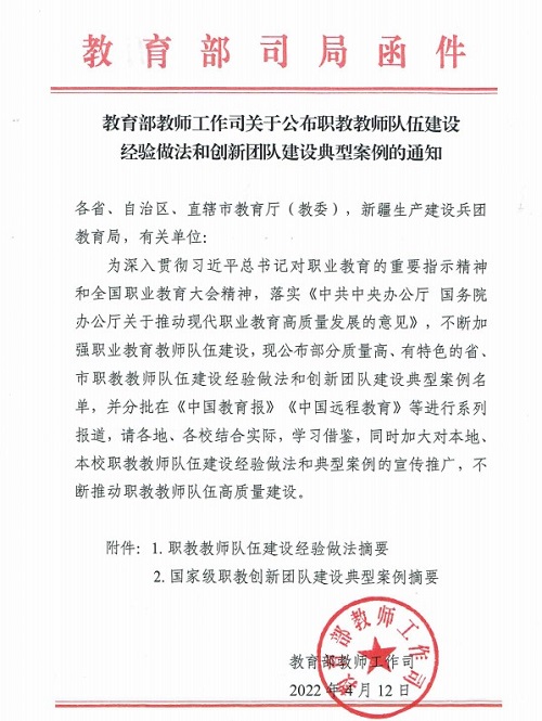2022年4月,教育部教师工作司发布《教育部教师工作司关于公布职教教师队伍建设经验做法和创新团队建设典型案例的通知》,pg国际物联网技术创新团队成功入选国家级职教创新团队建设典型案例名单。