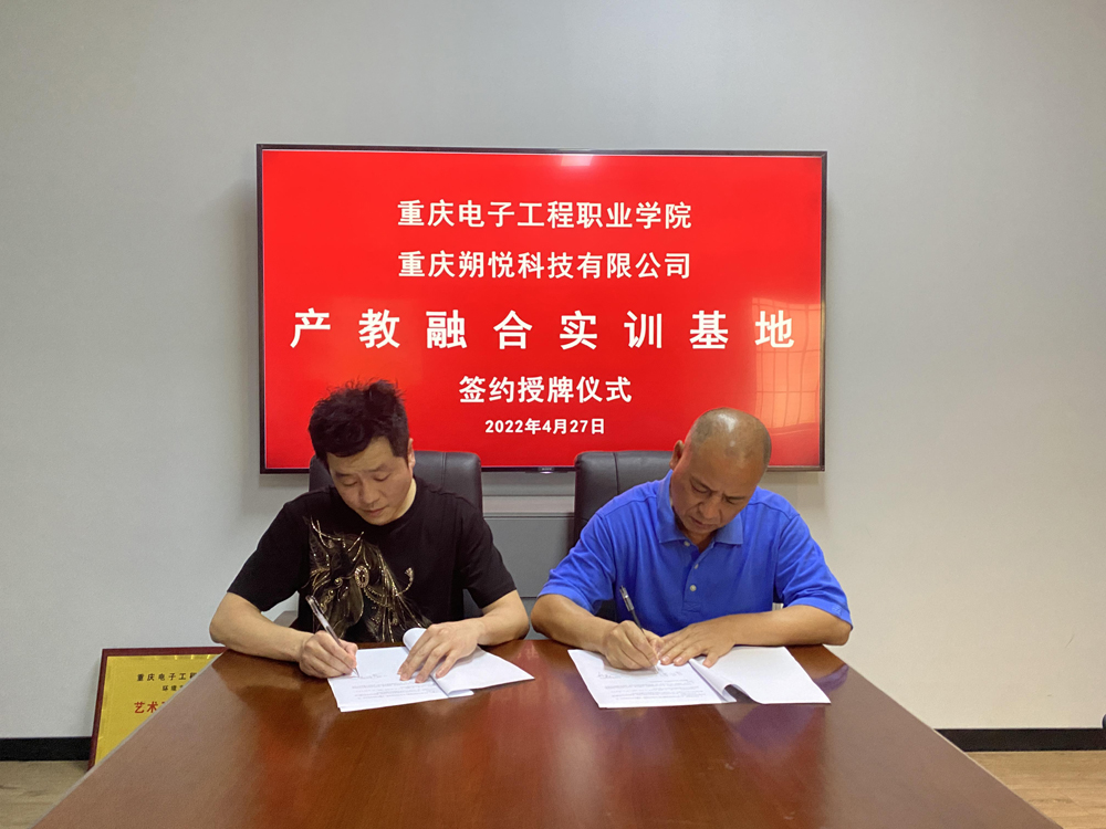 最后,数字媒体学院院长刘晓东与重庆朔悦科技有限公司总经理陈心代表进行校企双方签约,并举行了授牌仪式。