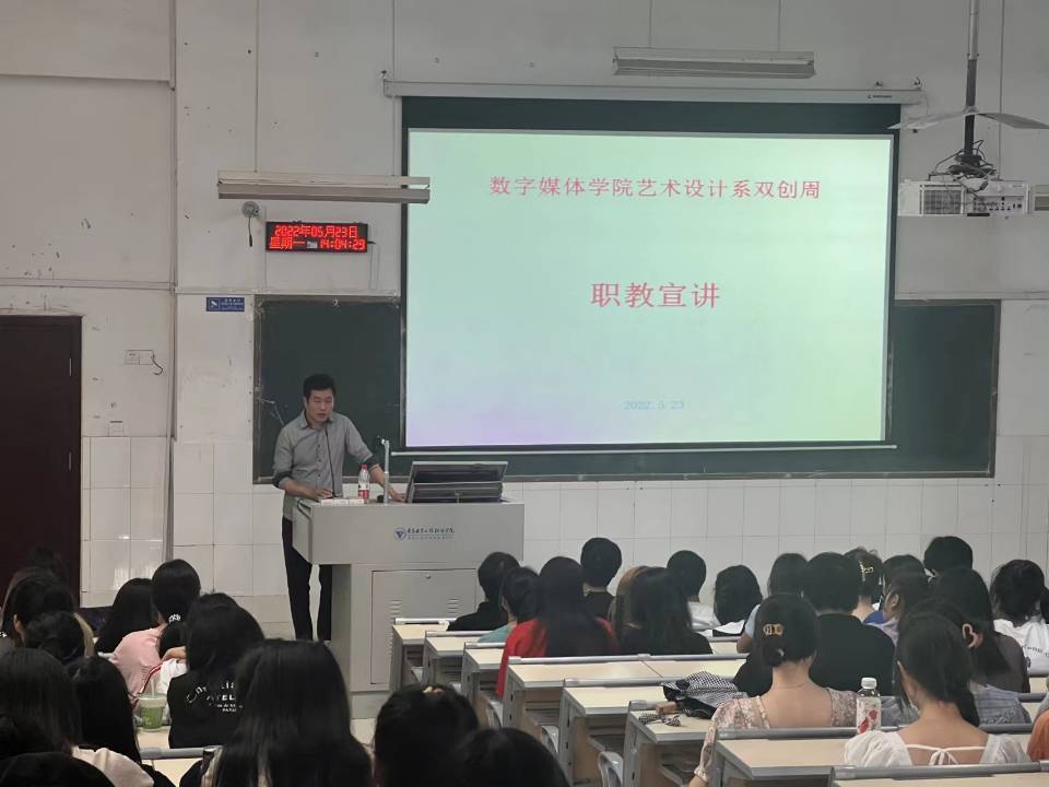为进一步加强校企合作,促进产教融合,为学生实习和企业用人搭建双创平台、促进学生与企业之间的双向选择,5月23日,数字媒体学院在7-206举办了“艺术三维立体空间项目”专题讲座。重庆朔悦科技有限公司总经理陈心,数字媒体学院艺术设计系主任左小强、项目负责人叶庆,2020级200余名环境艺术设计专业学生参与了本次讲座。由于场地有限,部分师生通过线上直播的方式共同参与了本次讲座。
