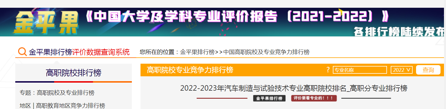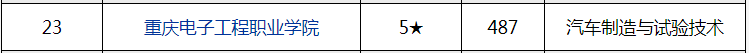 为助力“双高”建设,金平果对高职教育评价向深层次、多维度的专业领域评价、专业群综合竞争力评价扩展。2022年5月21日,“金平果”再次发布高职专业群综合竞争力评价数据,并第三次发布2022-2023年包括487所高职院校的汽车9个相关专业的排行榜。恭喜!重庆电子工程职业学院智能制造与汽车学院汽车制造与试验技术和汽车智能技术专业分别荣获2022-2023年“金平果”高职院校汽车专业排行榜5★和4★水平等级。