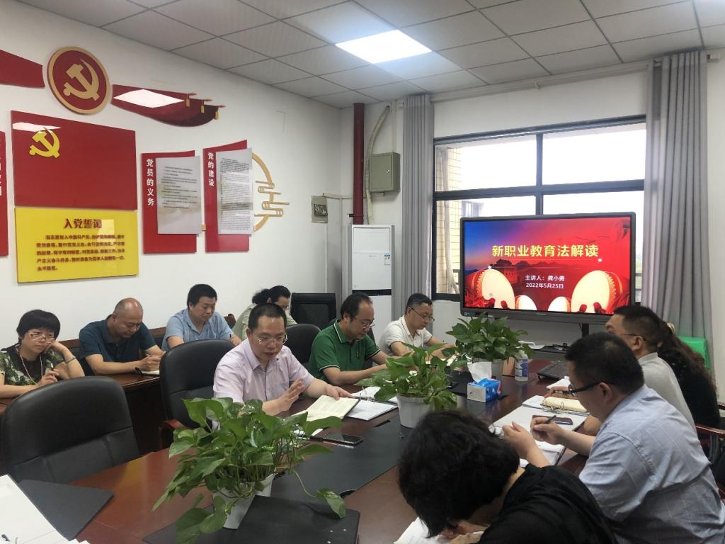 为全面理解新修订《中华人民共和国职业教育法》的精神,学校党委副书记龚小勇同志于5月25日下午,在7322党员活动室为教务处全体教职工作了新职业教育法专题讲座。