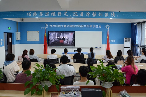 世赛光电基地教师首先带领同学们观看了“世赛光电技术项目《合光曲》” 宣传片和“光电技术项目第一届国家队选手‘10进5’考核赛”宣传片,让同学们对世赛光电技术有了初步的认识和了解,点燃同学们对世赛光电技术项目的热情。