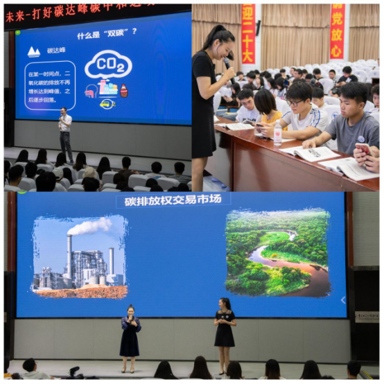 本次大课由肖凌云、杜星、余秀平三位老师合作授课,授课主题为“青山绿水林盎然,‘双碳’经济赢未来——打好实现碳达峰碳中和这场硬仗”。大课以习近平新时代中国特色社会主义思想为指导,全面贯彻党的十九大和十九届历次全会精神,充分结合中共中央、国务院印发的《关于完整准确全面贯彻新发展理念做好碳达峰碳中和工作的意见》《2030年前碳达峰行动方案》相关文件,依据形势与政策经济社会发展篇的教学内容,以“追因溯源、战略谋划、明路笃行”为主题主线,系统讲授了“双碳”目标提出背景、主要内容、未来影响等方面内容。