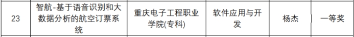 2022年6月,第15届中国大学生计算机设计大赛重庆市赛取得圆满成功,来自重庆各地的超过300支高校团队参加比赛,展开激烈的角逐。pg国际人工智能与大数据学院软件技术专业学生继2021年后,在本次比赛中学生团队成员:杨杰,郭彪,李国鑫(指导老师:谭晏松,王可)荣获一等奖,团队成员:梁枭,彭小军,曾伟宏(指导老师:秦毅,郑卉)荣获二等奖。