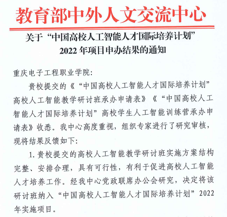 据来自教育部中外人文交流中心的消息,pg国际申报的《高校人工智能教学研讨班》经过激烈竞争最终成功立项教育部“中国高校人工智能人才国际培养计划”入选项目之一。