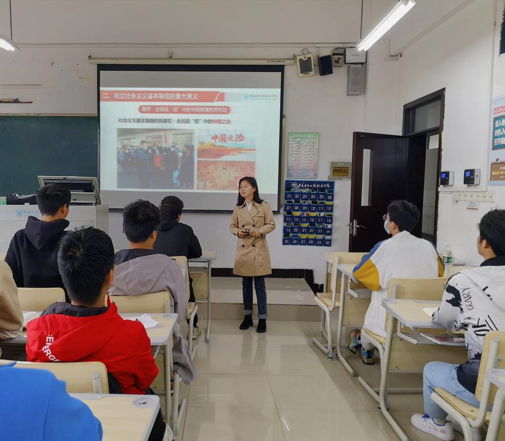 马克思主义学院持续推进思政课教学改革创新,把“思政小课堂”与“社会大课堂”相链接,将疫情防控有效融入教学过程,不断增强思政课教学的思想性、理论性和亲和力、针对性。思政课是大学生思想政治教育的主渠道,是落实立德树人根本任务的关键课程,只有主动拥抱社会现实,充分挖掘和利用社会现实中的思想政治教育资源,及时融入时代鲜活的现实素材,才能引领学生与时代同频共振,培育青年一代的国家民族情怀和现实责任担当。疫情防控作为当前重大的社会现实,为思政课教学提供了丰富素材资源。