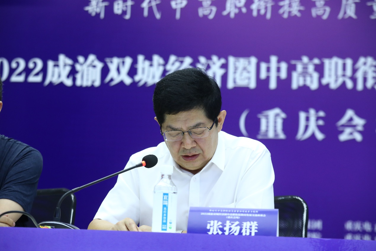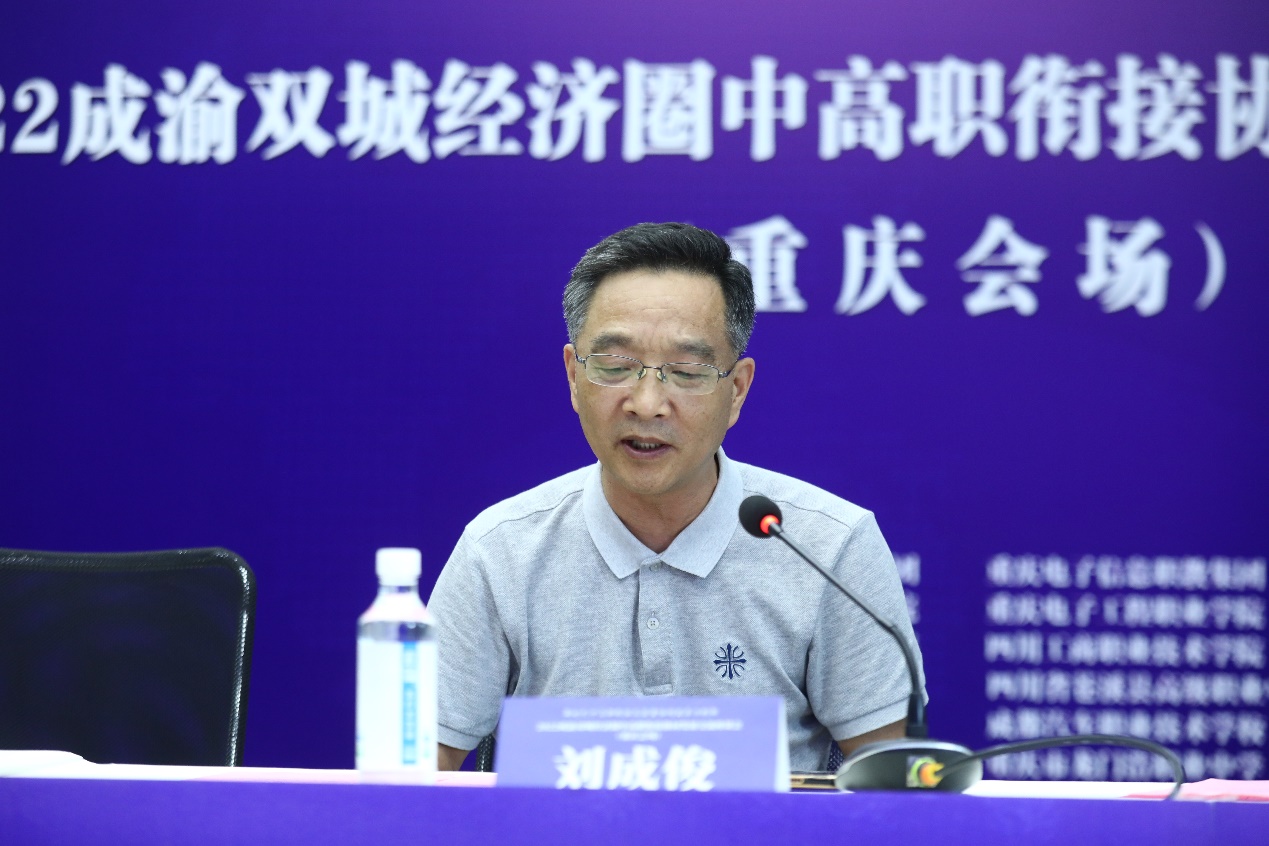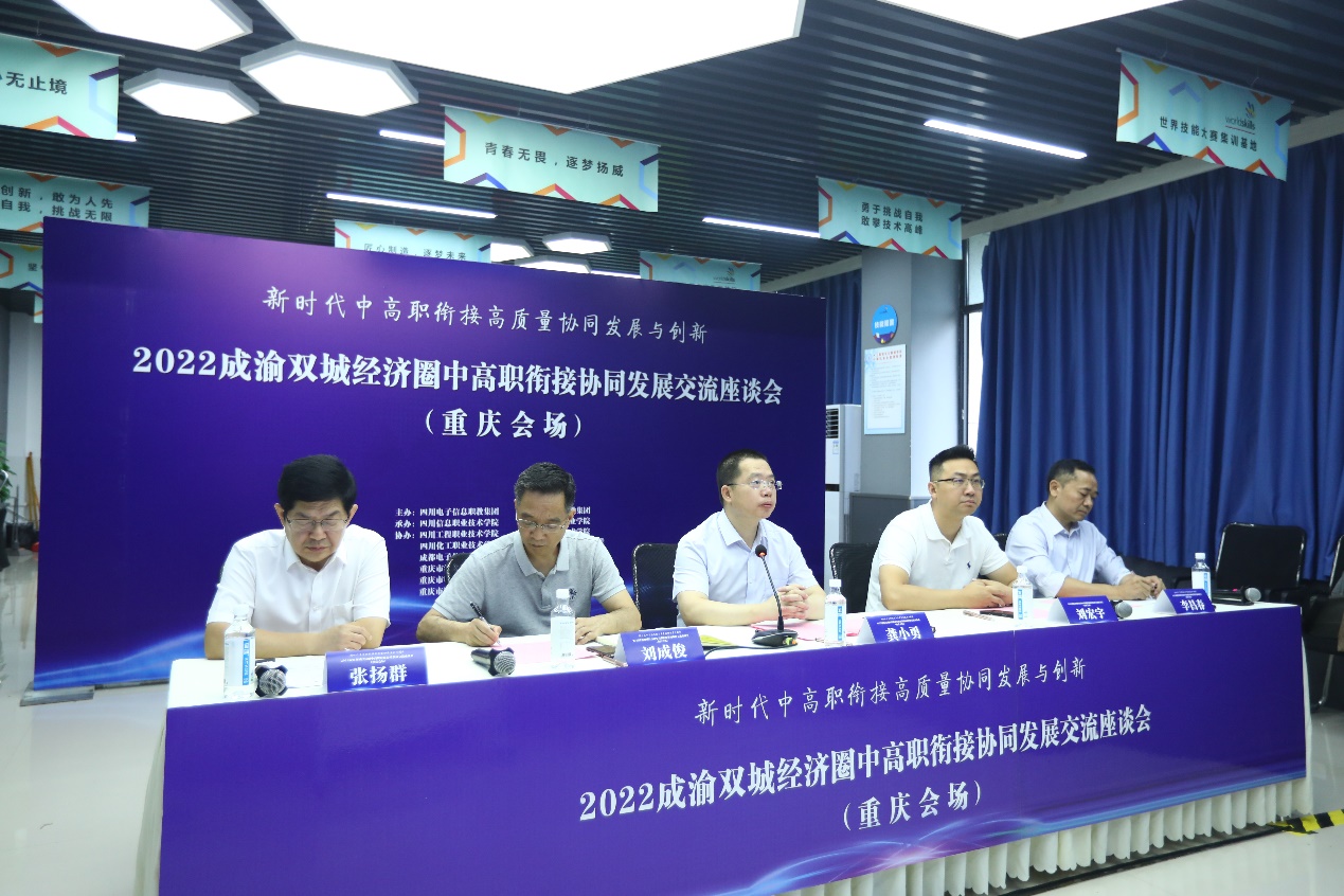 为深入贯彻新《职业教育法》,不断探索中高职贯通培养协同发展与创新,6月17日,由重庆电子信息职业教育集团和四川电子信息职业教育集团主办,pg国际与四川信息职业技术学院联合承办的2022年“成渝双城经济圈中高职衔接协同发展交流座谈会”在川渝两地同步召开,其中重庆分会场在pg国际举行。四川省经济和信息化厅宣传教育处处长廖卫民、副处长聂长兵出席会议,川渝两地100余所中高职院校和20余家企业参加会议。pg国际党委副书记龚小勇、副校长刘成俊、国际交流与合作发展处处长刘宏宇,渝北职业教育中心校长张扬群,龙门浩职业中学副校长李昌春出席重庆会场开幕式。
