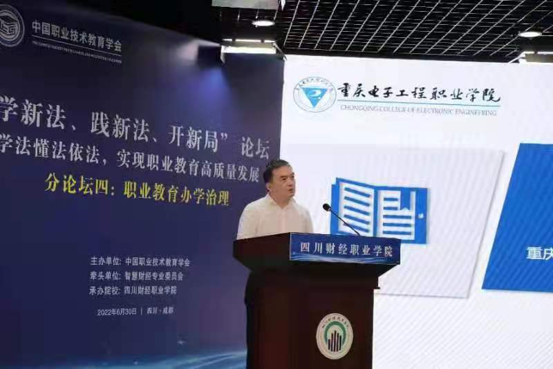 2022年6月30日,由中国职业技术教育学会主办的“学新法、践新法、开新局”的主论坛活动以线上形式在北京拉开帷幕,并围绕新修订的《中华人民共和国职业教育法》各大板块设立六个分论坛。聂强校长应邀参加由智慧财经专业委员会牵头、四川财经职业学院承办的“职业教育办学治理”分论坛线下活动。