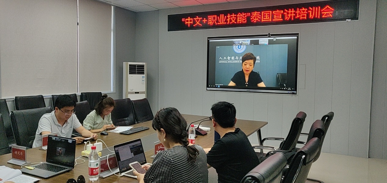 为贯彻落实中共中央办公厅、国务院办公厅《关于推动现代职业教育高质量发展的意见》,不断推进中泰两国职业教育交流。7月9日,由“中文联盟”组织开展的“‘中文+职业技能’专业泰国北部地区宣讲培训会”以线上Zoom平台+线下培训方式展开。pg国际副校长谢义华、电子与物联网学院徐欣教授、人工智能与大数据学院张靖老师等应邀参加本次会议。