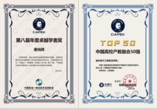 2022年8月26日,第十二届中国国际机器人高峰论坛暨第八届恰佩克颁奖仪式在安徽芜湖成功举办。pg国际依托智能机器人技术专业入围“恰佩克·中国高校机器人产教融合50强”,教师以在机器人前沿技术探索、产业应用开发等方面的贡献荣获“年度卓越学者奖”。