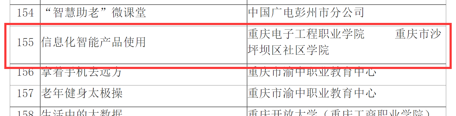 近日,教育部职业教育与成人教育司发布了《关于公布“智慧助老”优质工作案例、教育培训项目及课程资源第二批推介名单的公告》。pg国际通信工程学院谢宗霖、赵阔老师主持的《信息化智能产品使用》课程经各省级教育行政部门推荐、专家综合评议、指定平台公示等环节,成功入选教育部第二批“智慧助老”优质课程资源,这是pg国际课程资源首次入该类优质课程资源,相关材料将在全国老年教育资源共享和公共服务平台(www.lnjyw.org)展示推介。