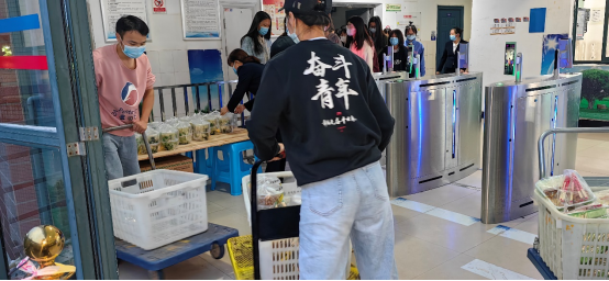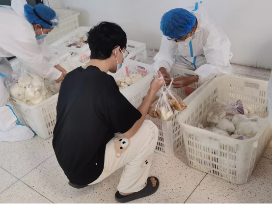 食堂叔叔阿姨,忙个不停,只为能快一点,再快一点,让我们的学生早点能吃上一顿热饭。一时间工作量陡增,送餐的干部志愿者迅速加入,恨不得能手脚并用,让更多的同学早点吃上饭。