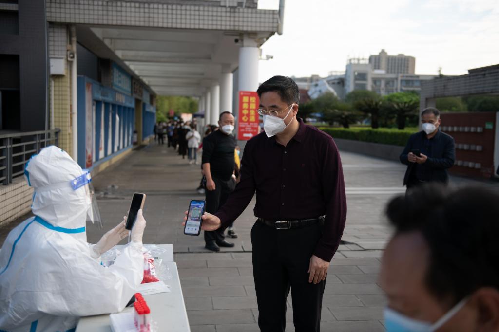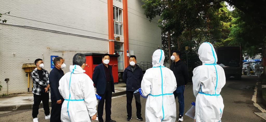 刘宴兵一行来到学生宿舍楼下核酸检测点,慰问工作人员,并要求全员检测,做到不漏一人。
