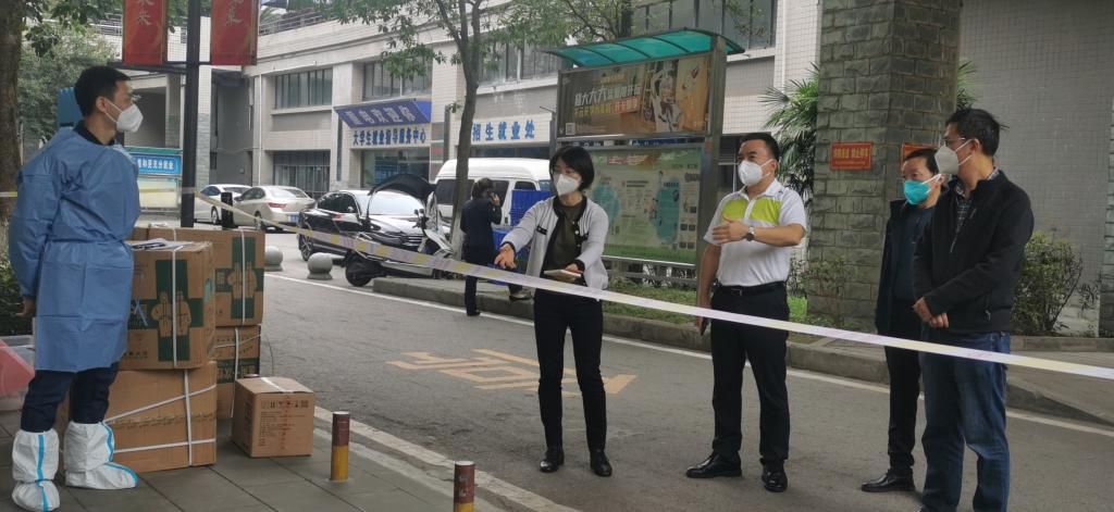 学校临时封控以来,市委教育工委专职副书记刘宴兵、师范处处长黄伟、学生处副处长严平、师范处干部袁瑛、沙区疾控中心党支部书记何建军多次在学校党委书记孙卫平、校长聂强及相关部门负责人的陪同下,亲临现场指导学校防疫工作。