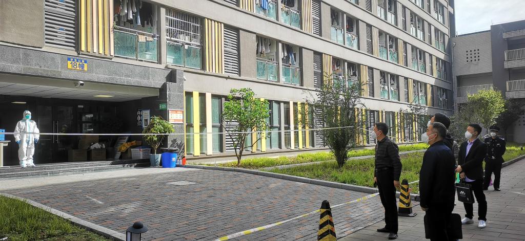 “18栋学生情况怎么样?有没有什么困难?我们全力提供保障!要注意做好个人防护!”市委教育工委专职副书记刘宴兵向入驻楼栋楼长鼓励喊话,慰问抗疫一线的教师员工。