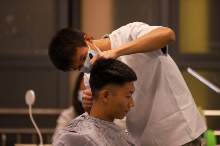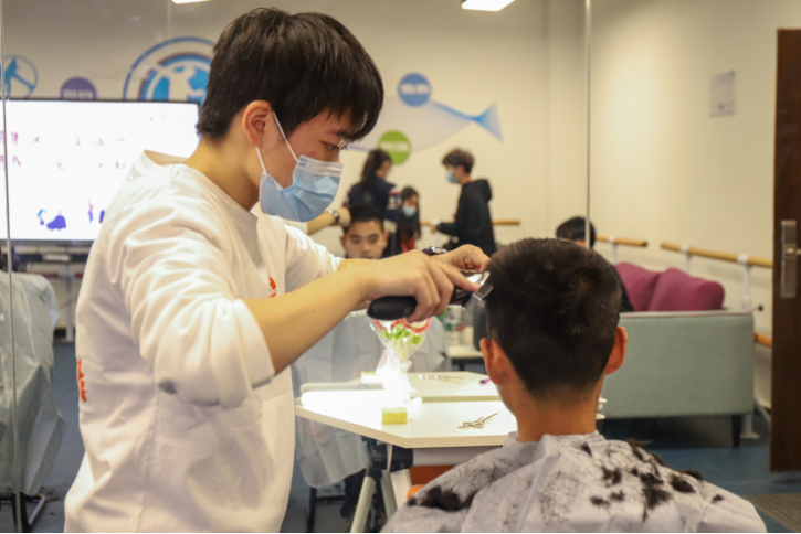 活动开设8个理发岗位,5个修眉岗位。活动开始后,前来理发的人员络绎不绝,排起了长队,不仅有本楼栋的同学,也有其他楼栋的同学,还有学校的清洁阿姨。同学们、清洁阿姨理发后都纷纷称赞理发的志愿者技术高超,表示非常满意。