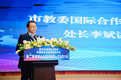 3月22日,重庆市高等教育学会外国留学生教育管理分会第二届理事会2023年第一次会员大会顺利召开,市外办涉外管理处处长杨瑜、市公安局出入境管理总队总队长张攀、市教委国际合作与交流处处长李斌、重庆工商职业学院校长李国、市高教学会秘书长余志祥等领导出席会议并讲话。
