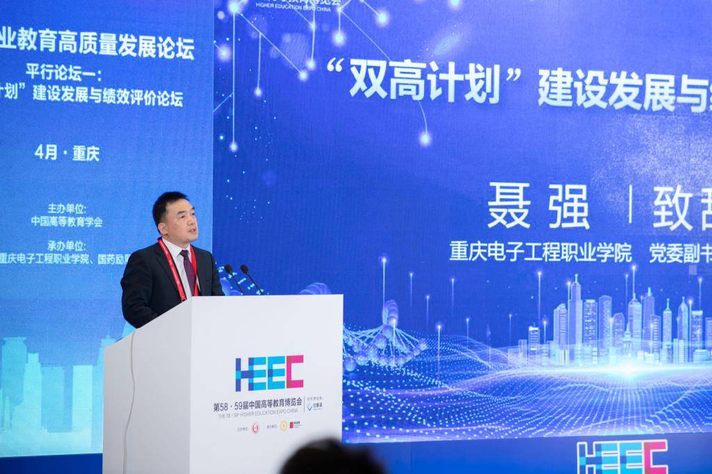 校长聂强在致辞中介绍了重庆电子工程职业学院“双高计划”建设以来取得的突出成绩,表示在职业教育大改革、大发展、大作为的历史最好时期,职业院校要深入交流合作,共同推动“双高计划”建设走深走实,共创职业教育高质量发展美好未来。