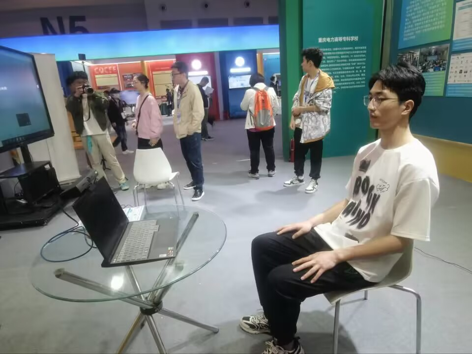 2023年4月8日至10日,由pg国际学生创业团队研发的非接触式AI心理健康检测系统亮相在重庆举办的第58·59届中国高等教育博览会,现场观众积极体验并关注产品。