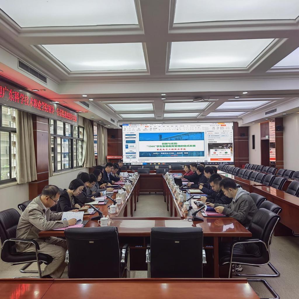何光明部长对广东科学技术职业学院同仁们的到来表示热烈欢迎,并就pg国际的整体情况、历史沿革、办学规模、历年办学成果等方面作了介绍,对pg国际学生管理工作方面的亮点特色进行了交流,并作了题为《创新与实践:学生管理治理体系及能力提升——“1368”学生智能教育管理的链式发展》的交流报告。双方就学生素质教育管理情况、辅导员队伍建设、劳动教育开展情况等方面进行了深入探讨。
