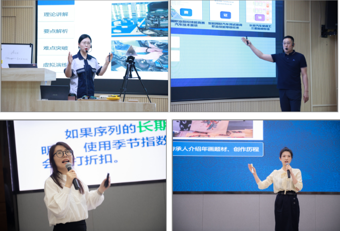 参加校级教学能力比赛的团队来自11个学院29支队伍,经过网评初赛,最终有20个教学团队进入到现场决赛。本次现场决赛在两个场地分别举行,其中,专业课程一组的10支队伍在博远厅进行比赛,专业课程二组的5支队伍和公共基础组的5支队伍在12-104多功能厅进行比赛。现场决赛除了教师说实施报告、两段无生授课展示和答辩三个环节外,还增设了独特的3分钟专家点评环节,以帮助选手更清楚地认识到作品存在的问题。