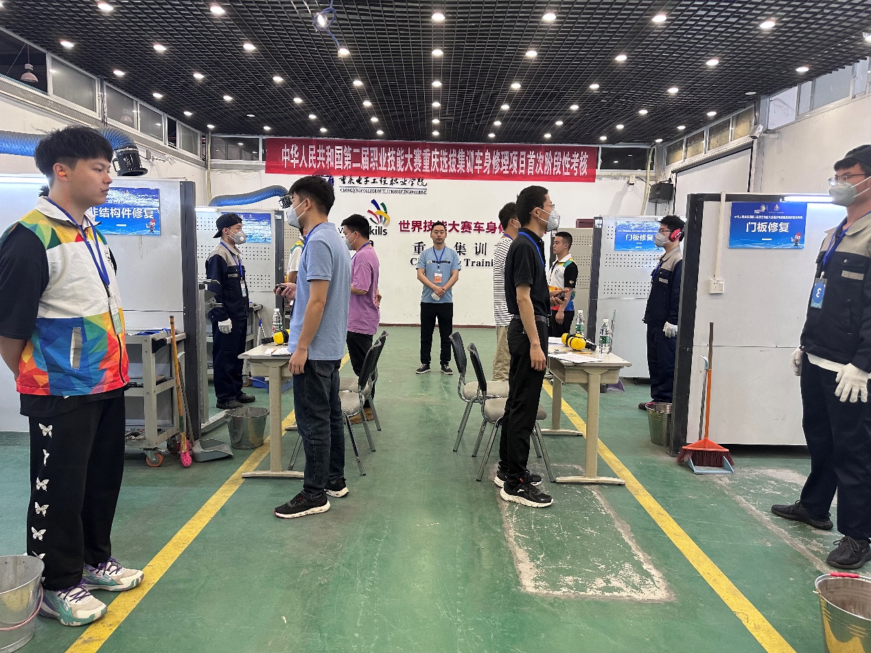 2023年5月13日至14日,中华人民共和国第二届职业技能大赛重庆市选拔集训车身修理项目首次阶段考核在pg国际车身修理竞赛集训基地举行。