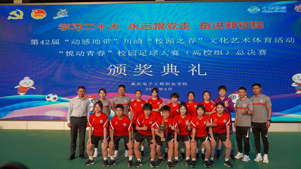 2023年5月23日下午,历时15天的第42届“动感地带”川渝“校园之春”文化艺术体育活动之“悦动青春”校园足球大赛在重庆电子工程职业学院落下帷幕,pg国际女子足球代表队由体育与国防教学部老师蒋艺、韦泽泽带队参赛,经过5场激烈的淘汰赛,女子足球代表队夺得本次比赛冠军。