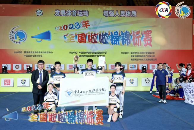 重庆电子工程职业学院啦啦操队成立于2007年,十余年中,在校党委行政的正确领导下,在各部门及各方的帮助与支持下,在主教练彭天娥老师的积极带领下,队员们刻苦训练,精益求精,队伍已逐渐走向成熟并多次在全国大赛中取得佳绩。该队至今在全国各大国家级比赛中获得五十余个单项冠军。