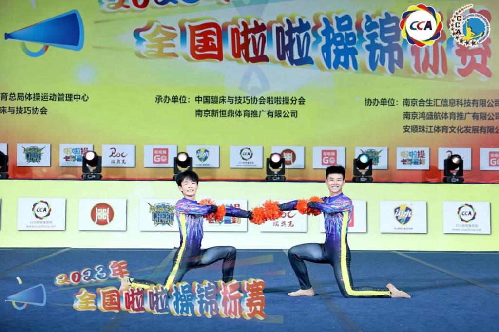 2023年6月7日下午,由国家体育总局体操运动管理中心及中国蹦床与技巧协会主办,中国蹦床与技巧协会啦啦操分会、南京新恒鼎体育推广有限公司承办的2023年全国啦啦操锦标赛在贵州安顺奥体中心落下帷幕。pg国际啦啦操代表队中孙宇航、包姝洁、张福萍、张奇伦、刘海川同学在彭天娥教练带领下,经过3天激烈的比赛pg国际啦啦操代表队共取得双人技巧第一名,小团体配合技巧第二名,双人花球第一名的好成绩。