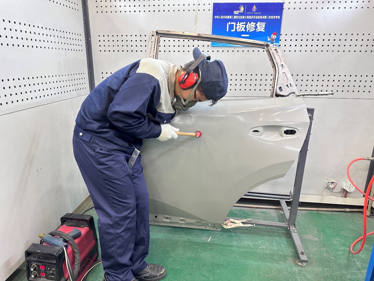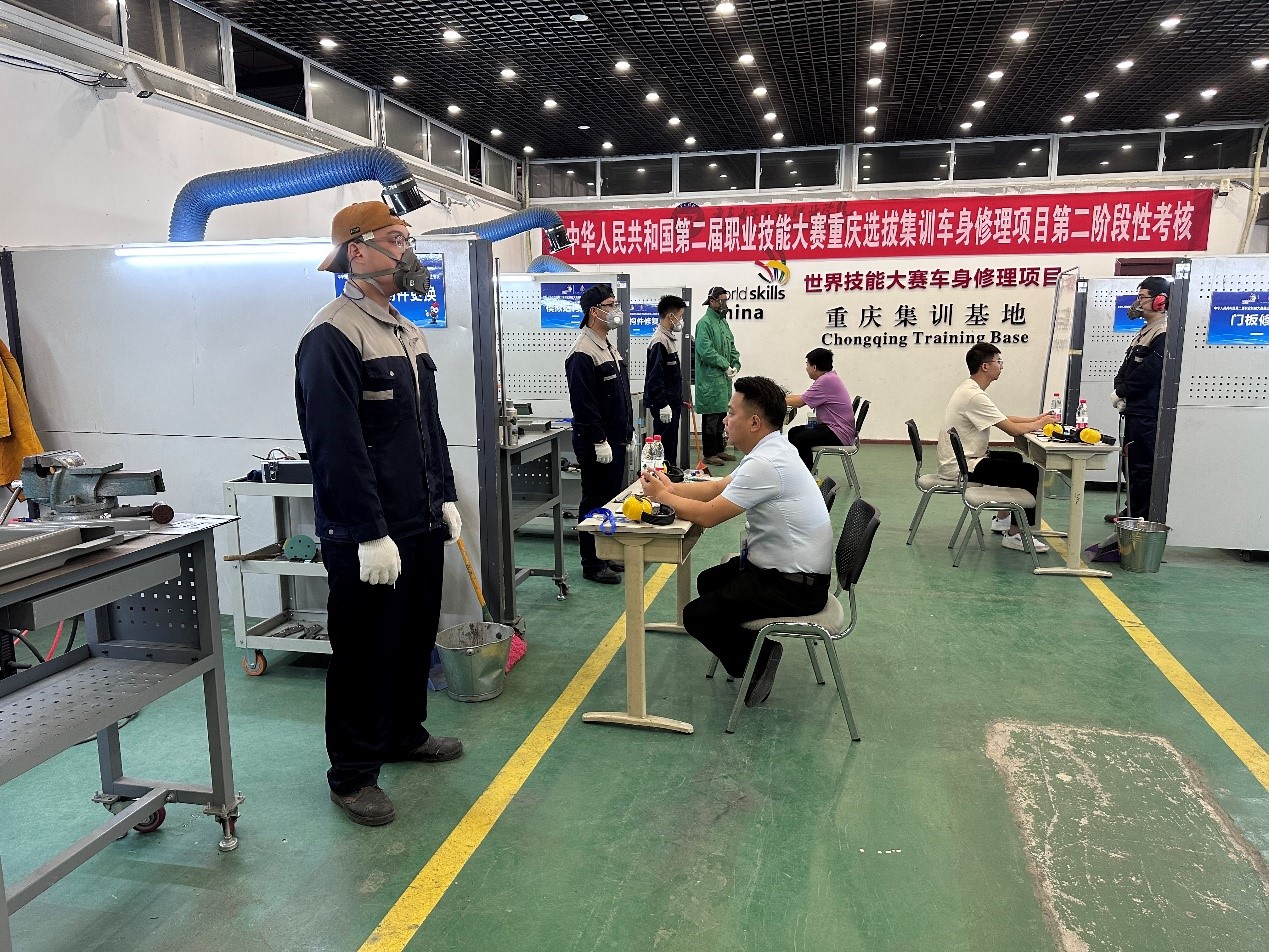 2023年6月13日至14日,中华人民共和国第二届职业技能大赛重庆市选拔集训车身修理项目第二阶段考核在pg国际车身修理竞赛集训基地举行。