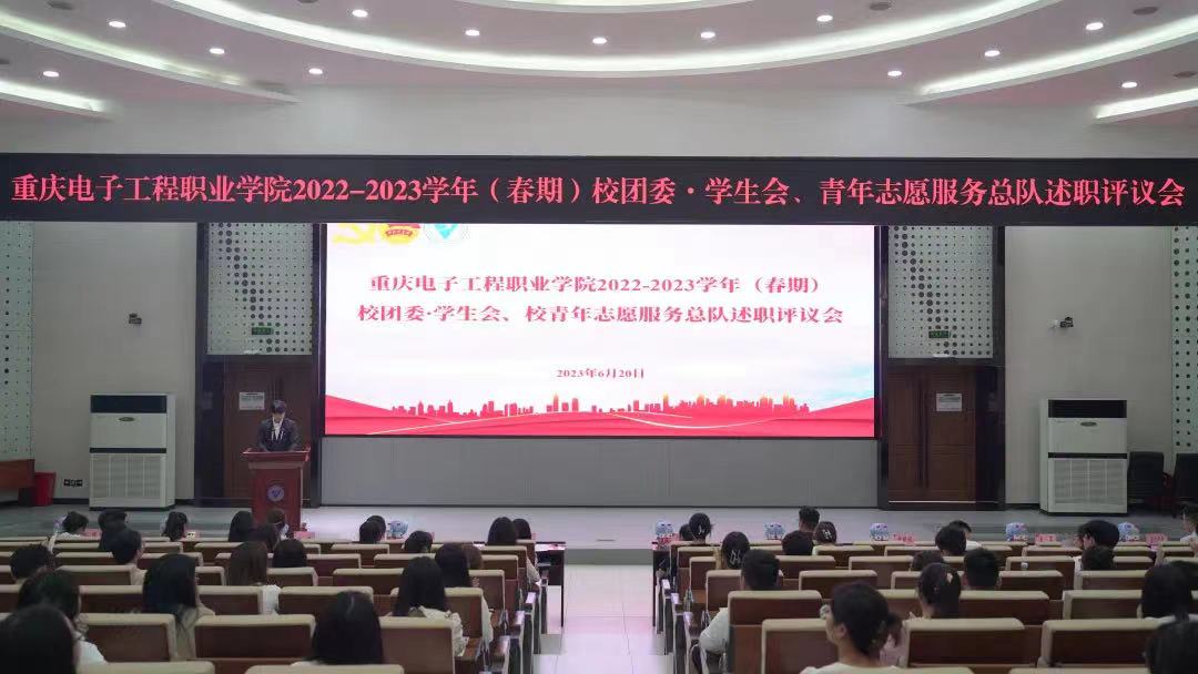 为深学笃用习近平新时代中国特色社会主义思想和党的二十大精神,全面落实团学改革相关工作要求,加强学生组织内部建设,推动学生组织持续发展。6月20日下午,重庆电子工程职业学院2022-2023学年(春期)校团委·学生会、校青年志愿服务总队述职评议会于博远厅顺利举行。党委学工部部长何光明教授、校团委副书记、学生会秘书长范可佳、二级学院团总支书记、校团委专职团干部出席本次会议,述职学生骨干、校团委学生会、校青年志愿服务总队、各工作部门工作人员代表和二级学院普通学生代表参加会议。本次述职评议会由校大学生艺术团陈建全同学主持。