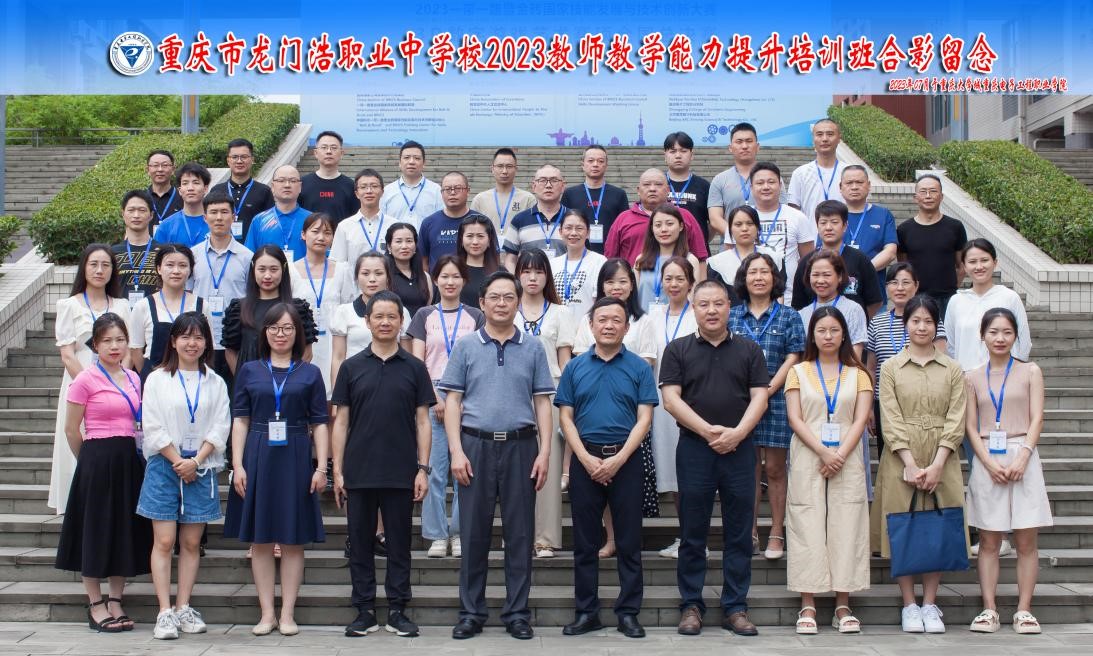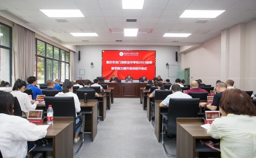 2023年7月7日下午,重庆市龙门浩职业中学校2023教师教学能力提升培训开班式在pg国际国培基地博学厅举行,重庆市龙门浩职业中学校长钟代文,校长助理、计算机部部长钟勤,pg国际培训与继续教育学院院长、基地办主任莫绍强,以及龙门浩职业中学校的50名教师参加开班式,开班式由基地办副主任张亚主持。