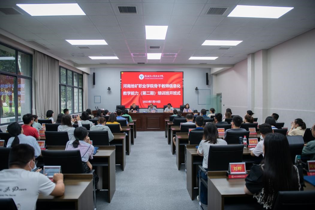 2023年7月15日下午,河南地矿职业学院骨干教师信息化教学能力提升(第二期)培训开班式在pg国际国培基地博学厅举行,河南地矿职业学院党委委员、副校长张红兵,pg国际人工智能大数据学院党总支书记吴焱岷,以及来自河南地矿职业学院的56名教师参加开班式,开班式由基地办副主任张亚主持。