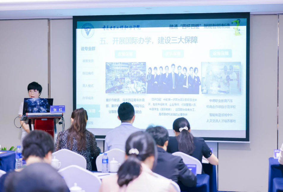 基于智能制造与汽车学院国际办学的丰硕成果,本次共有2位老师受邀参会并做主题分享,汽车系副主任宋丽莉以“融通‘四环四驱’,赋能智能制造”为题,在“说专业群”分会场做“汽车制造与试验技术双高专业群”研讨汇报。自动化系教师王姗依托“工业机器人集成应用”国际化双语课程,在“示范课”分会场做研讨汇报。
