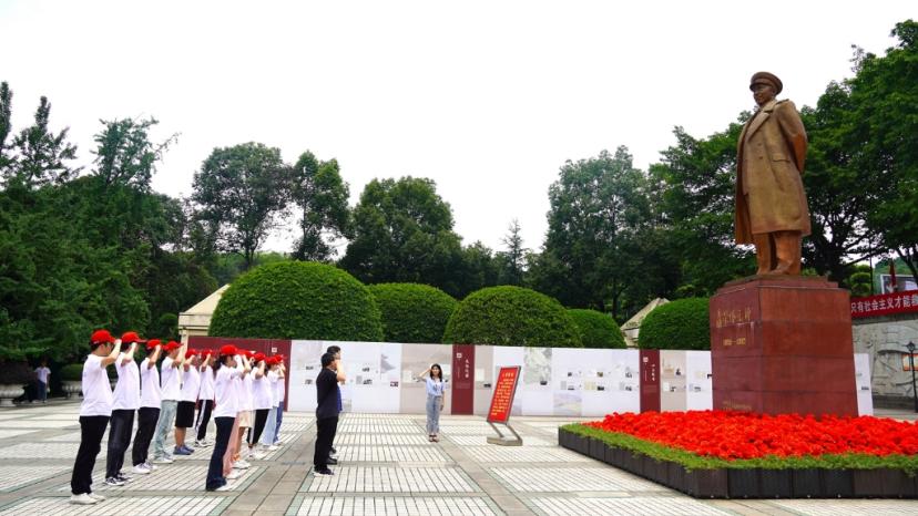 “我志愿加入中国共产党,拥护党的纲领,遵守党的章程,履行党员义务……”顶着炙热的阳光,在江津聂荣臻元帅陈列馆门前,面向聂荣臻元帅的雕像和鲜红的党旗,实践团成员们在马克思主义学院教师彭镜的带领下高举右拳许下铮铮誓言。