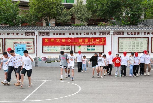 近日,重庆电子工程职业学院“桑梓”文明新风践行团在重庆市巫山县官渡镇杨林村开展暑期“三下乡”社会实践活动。活动中,志愿者们在杨林村村委会开设“七彩课堂筑梦童心“暑假小课堂,立足少年儿童的成长成才规律,围绕“德、智、体、美、劳”五大板块打造了科学小课堂、趣味运动会、“非遗”手工制作多项特色活动,并为杨林村设计打造儿童图书馆,为杨林村少年儿童的成长成才贡献青春力量。