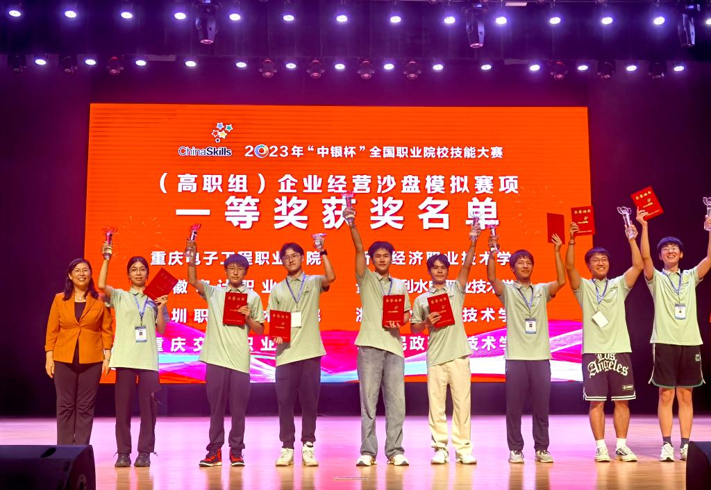 8月17日,2023年全国职业院校技能大赛高职组“企业经营沙盘模拟”赛项在河北交通职业技术学院举行,共有来自全国各省、自治区、直辖市的83支代表队同台竞技。经过一天紧张激烈的角逐,由财经管理学院樊秋杰、李尚恩、吴洪丽、谭鹏组成的重庆电子工程职业学院代表队以全国第1名的成绩荣获团体一等奖。