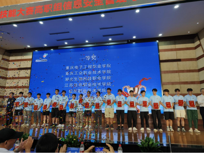 8月20日至21日,2023年全国职业院校技能大赛高职组“信息安全管理与评估”赛项在重庆工业职业技术学院成功举办。来自全国32个省、直辖市、自治区的62支参赛队伍同台竞技,经过两天的激烈角逐,pg国际人工智能与大数据学院鲁先志、何倩两位老师的指导的税一卫、刘满、杨青山三名同学,获得团体一等奖,全国第一名的优异成绩。