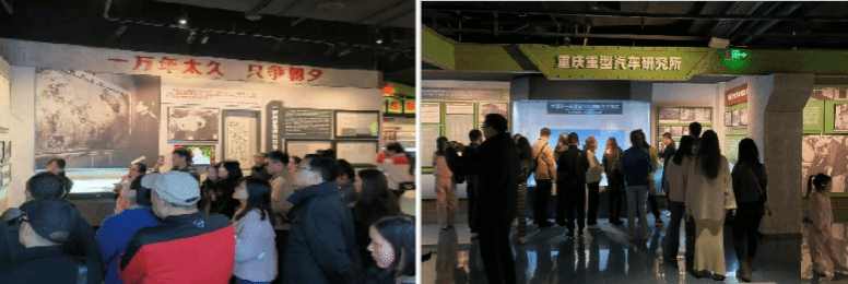 老师们首先参观了重庆红岩重型汽车博物馆。重庆红岩重型汽车博物馆总面积12886平方米,是一座集博物馆、科技馆、文化馆、爱国主题教育基地于一体的新型博物馆,重庆红岩重汽博物馆被中国关心下一代工作委员会授予第五批“党史国史教育基地”。还被授予“全国重型汽车产学研实训基地”“爱国主义教育基地”“人文社会科学普及基地”等。博物馆室内展区共分为五部分:序厅及时光之门展区,展示五湖四海的人来到大足参加“三线建设”;重大决策展区,讲述上世纪六十年代,中央“三个决策”在大足的历史;流金岁月展区,讲述“三线建设”者艰苦卓绝创业、家国情怀的故事;筑梦重车展区,展示重汽人如何砥砺奋进、振兴民族工业,以及其中激动人心的成就和故事;最后的盛世华章展区,展示双城双桥、重汽重镇,携手走向辉煌。