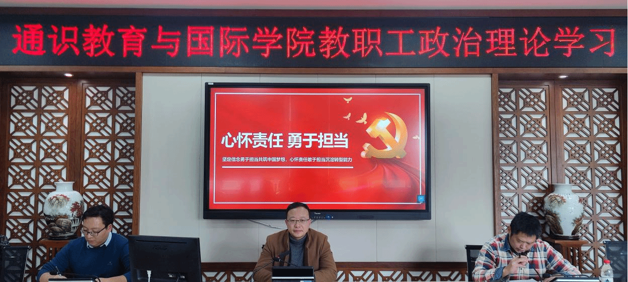 为践行“三会一课”制度,进一步加强党的组织建设,坚定党员理想信念,提高党员自身修养,12月7日,通识教育与国际学院党总支在国际丝路会议室2307开展“心怀责任,勇于担当”专题党课,党总支书记沈雕同志主讲,全体党员参会学习。