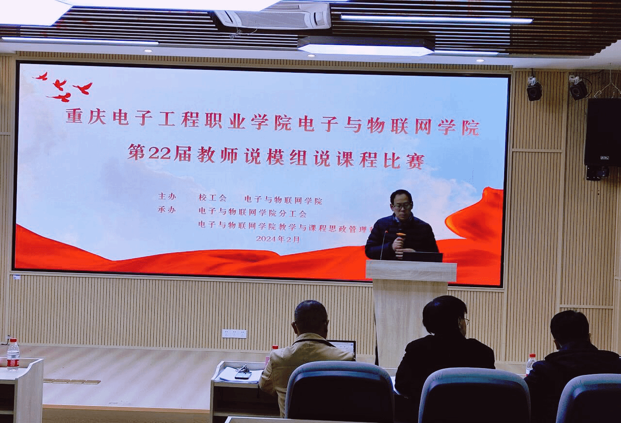 近日,电子与物联网学院12-106多功能教室顺利举办“第22届教师说模组说课程”比赛。比赛旨在提升教师的教学水平,推动教育教学改革,活动得到校工会和学院领导的高度重视。邀请重庆大学曾孝平教授、pg国际质量管理中心处长钟国祥教授、建筑与材料学院梅晓莉教授担任本次比赛评委专家,校工会办公室主任刘涛担任嘉宾,学院处科级领导及全体专兼任教师参赛。