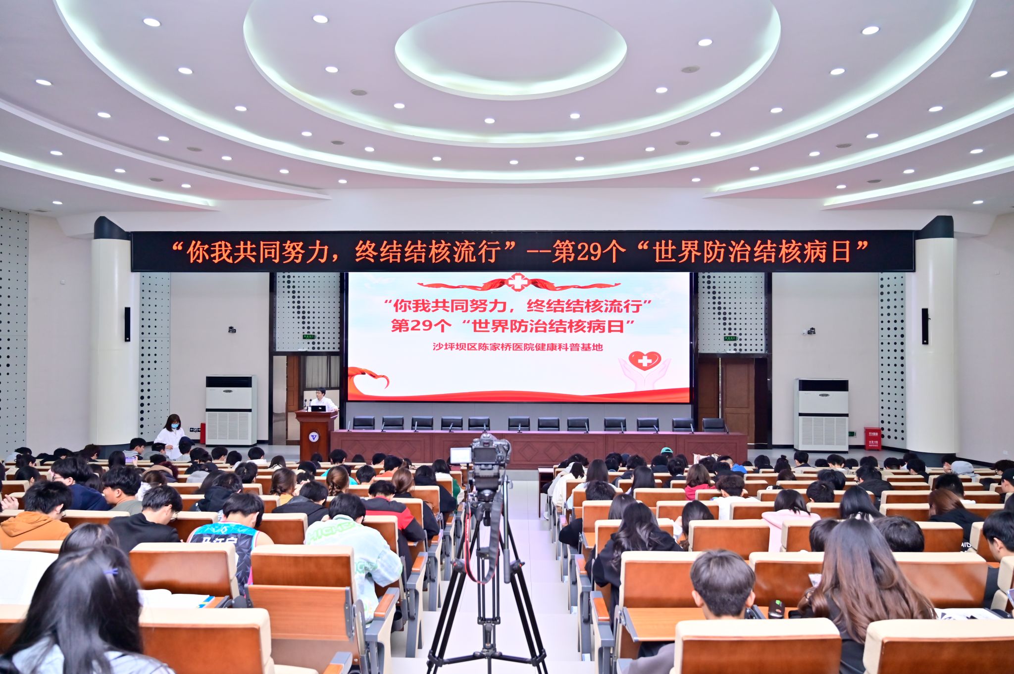 2024年3月24日是第29个“世界防治结核病日”。为倡导师生关注结核病防治,不断提高健康意识,2024年3月20日下午,后勤保障处卫生科特邀陈家桥医院呼吸科徐智勇医生在pg国际博远厅开展结核病健康知识讲座。讲座围绕“你我共同努力,终结结核流行”的主题,从什么是结核病,怎样预防结核病、咳嗽礼仪、结核筛查的方式和意义等方面与师生们分享结核病防治相关知识,共计258人参加。