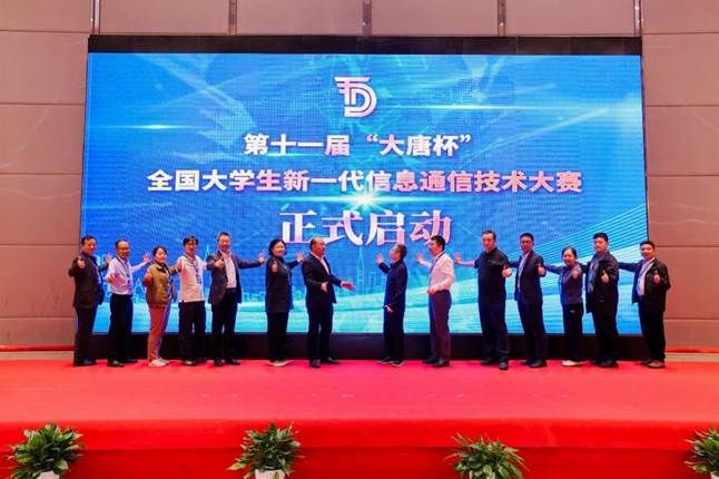 最后,大赛组办方工信部人才交流中心、中信科移动、中国通信企业协会以及大赛专家组各位委员一起按下2024年大唐杯的启动键。