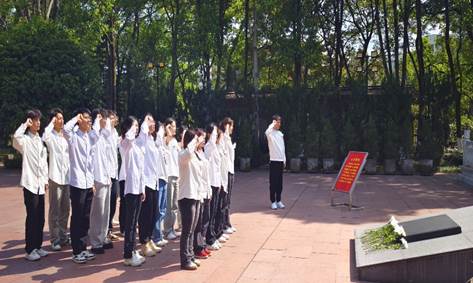 进入陵园,张逍老师先带领同学们在烈士墓前整齐列队,向烈士们默哀致敬,并献上白花,表达对烈士们的深深敬意与缅怀之情。随后带领同学们进行宣誓,承诺将继承先烈的遗志,为国家和人民作出贡献。