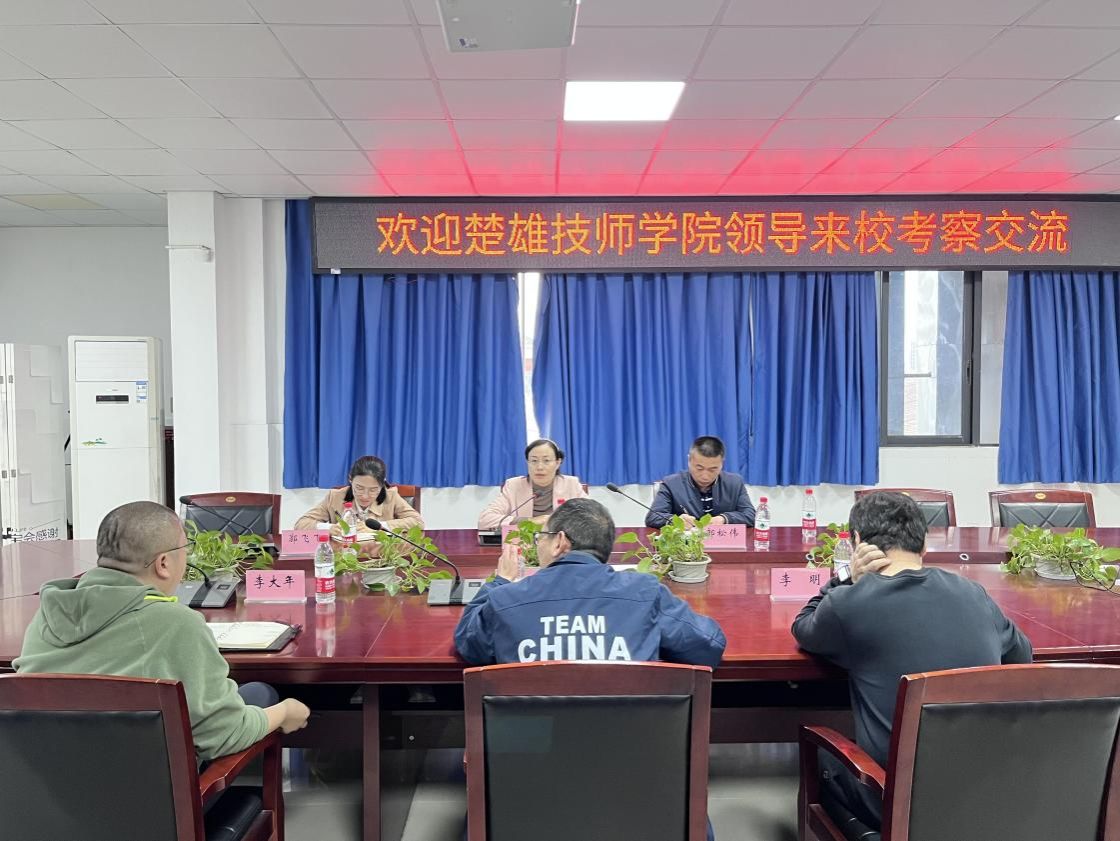 陈良首先对楚雄技师学院的来访表示热烈欢迎,对学校在师资、办学、人才培养、专业建设等方面进行了概述,并介绍了“双高”建设5年来学院在教学、科研、竞赛等方面取得突出成绩。张艳丽具体介绍了楚雄技师学院基本情况后,双方就“双高”建设、人才引进、大师工作室建设、校企合作、技能竞赛等方面进行了广泛深入的交流。