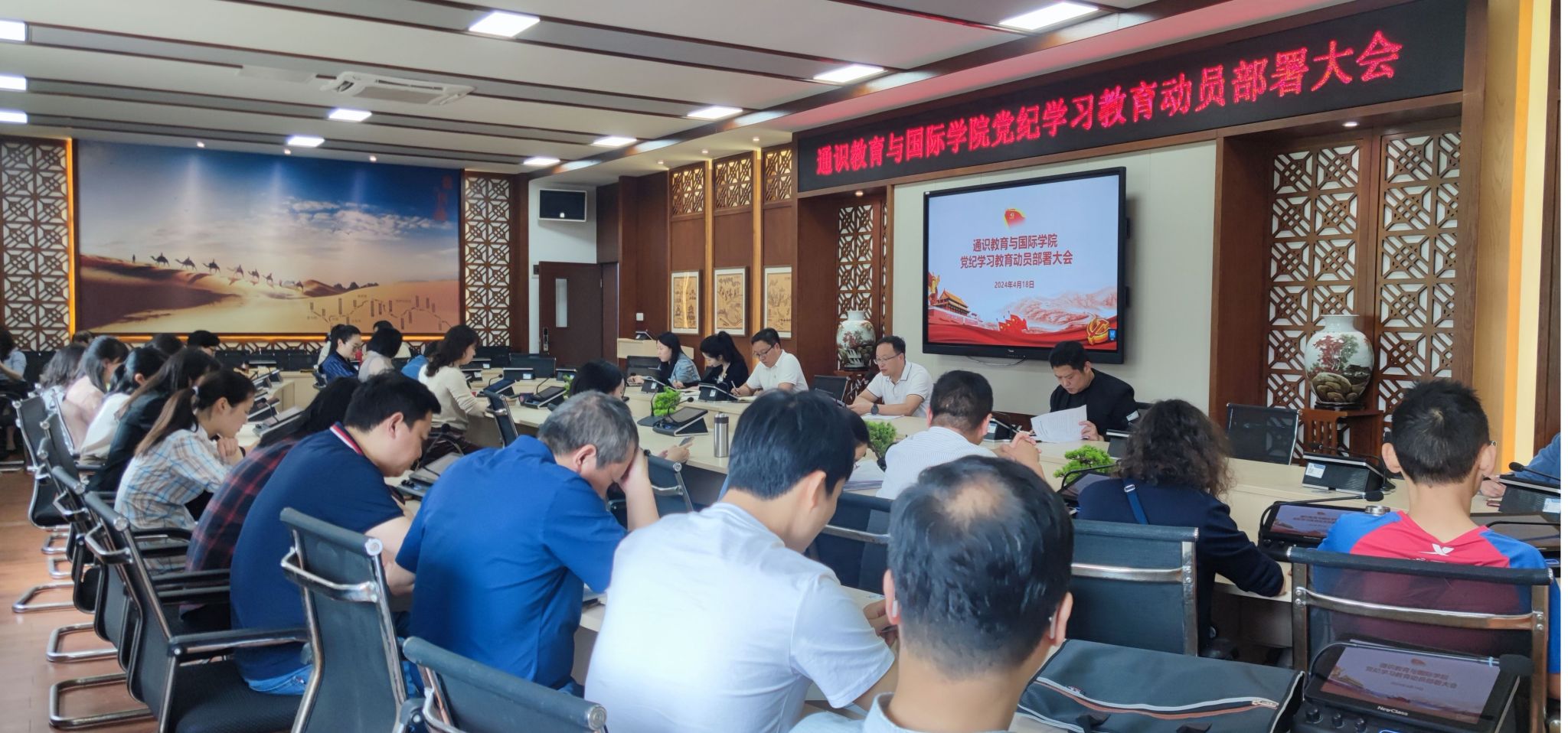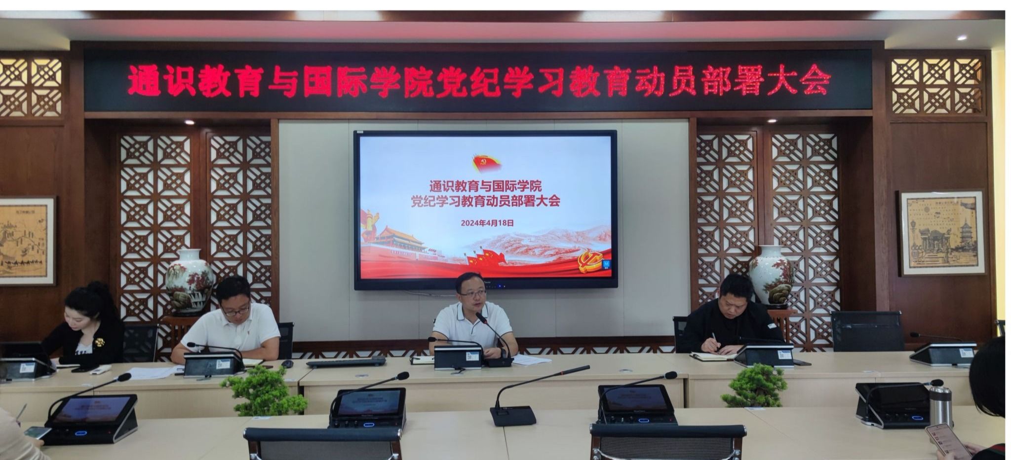 2024年4月18日下午,通识教育与国际学院在2307丝路国际会议室开展了党纪学习教育动员部署大会。会议由学院党总支书记沈雕主持,学院办公室主任罗路、教务科科长宋超及全体教职工参加了本次部署推进会。