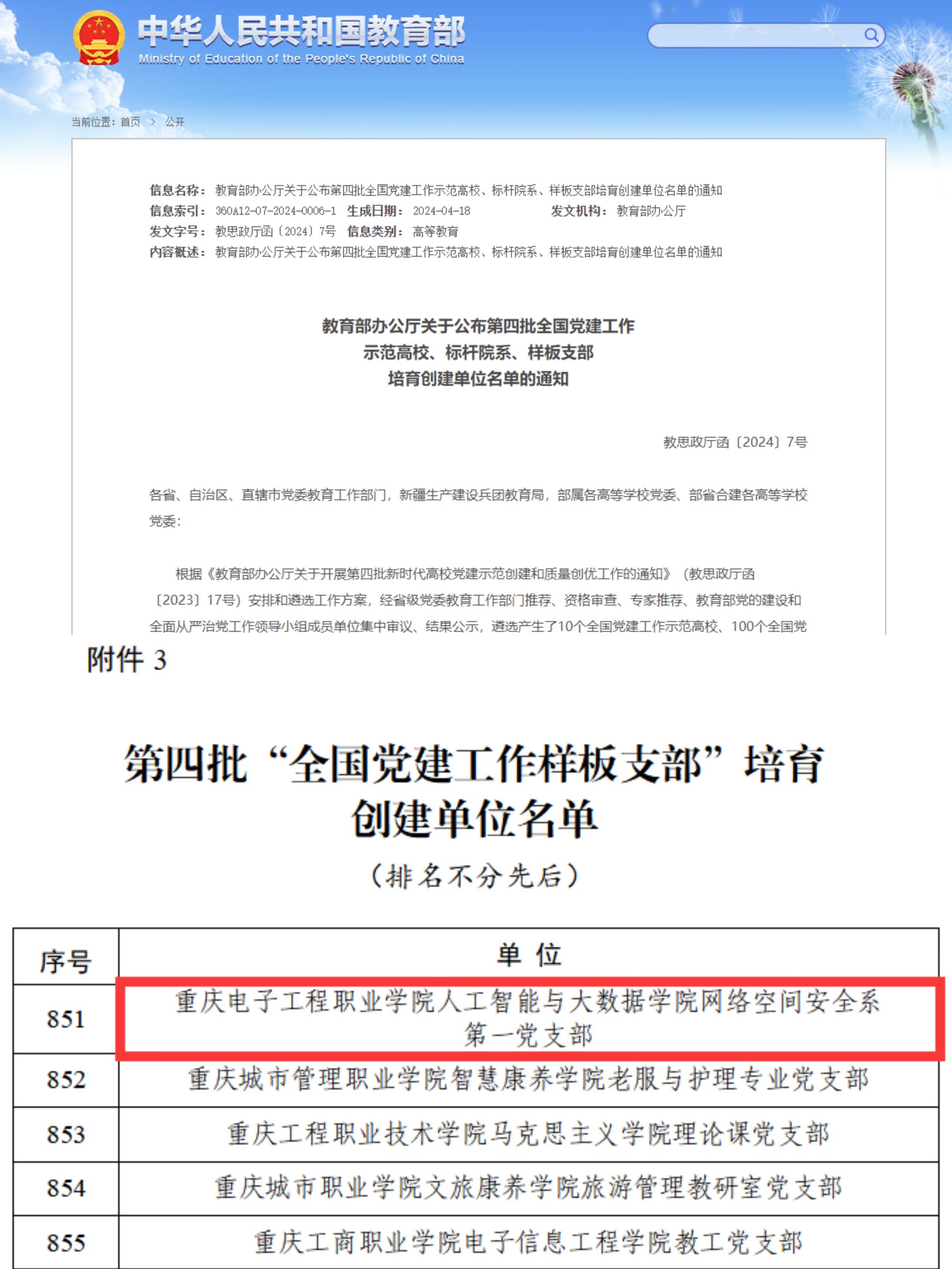 近日,教育部公布了第四批全国党建工作示范高校、标杆院系、样板支部培育创建单位名单,pg国际人工智能与大数据学院网络空间安全系第一党支部成功入选第四批“全国党建工作样板支部”培育创建单位。