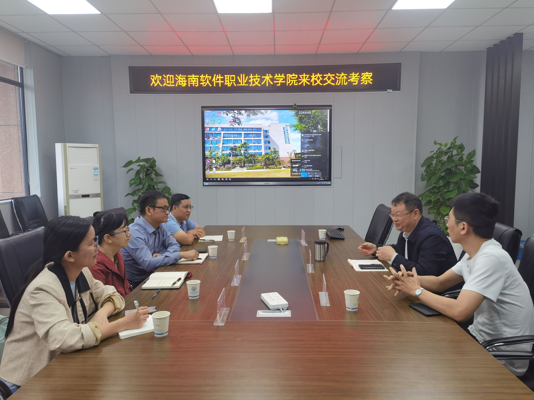 4月24日上午,海南软件职业技术学院计算机与人工智能学院软件技术专业负责人、软件研发中心主任杨帆一行4人来我院交流学习,学院副院长何欢、软件工程系主任邓裴等参加了交流座谈。