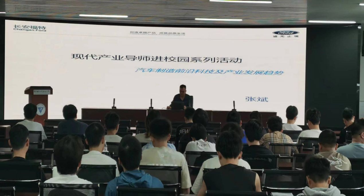重庆长安汽车股份有限公司两江工厂汽车装调高级技师张传华,为23级汽车制造专业的4个班学生分享了长安汽车股份有限公司的发展历程成长个人经历。
