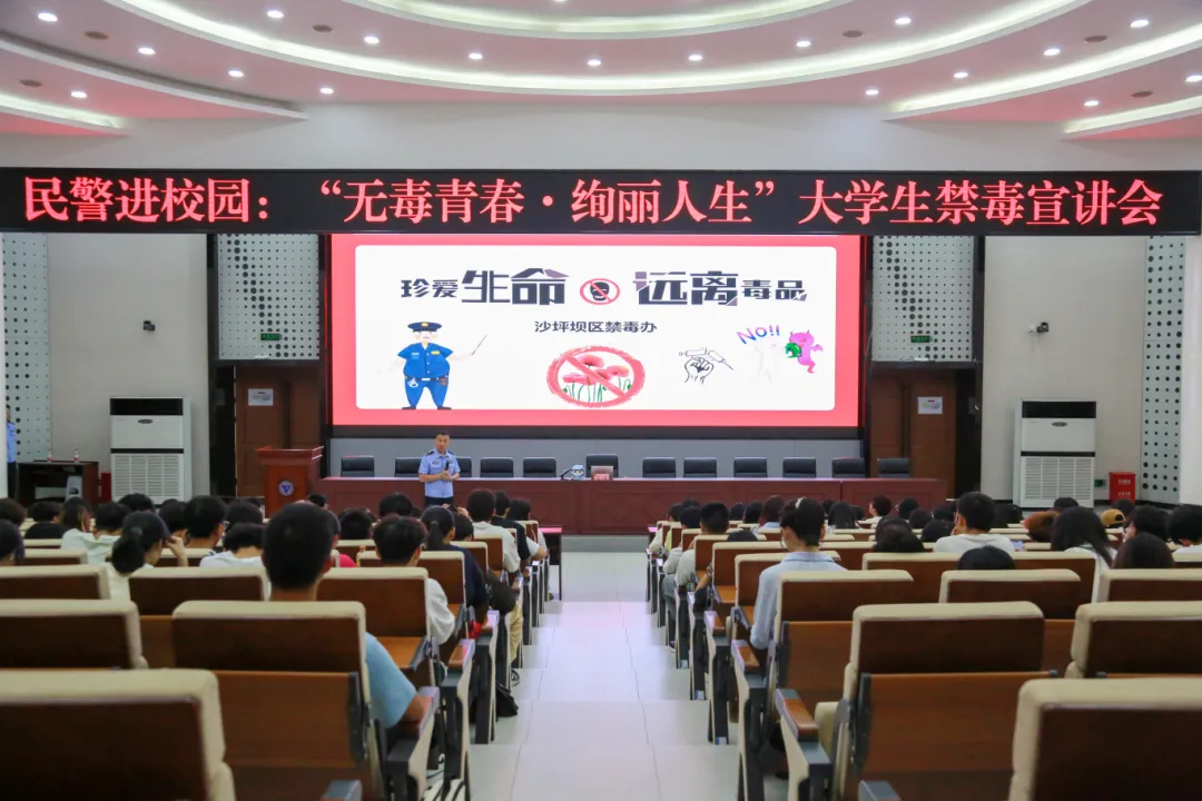 为深入贯彻落实习近平总书记关于禁毒工作的重要指示精神,坚决打赢新时代禁毒人民战争,积极动员广大青年大学生参与禁毒斗争,凝聚共建共治共享禁毒工作合力,大力掀起禁毒宣传教育热潮,帮助pg国际学子树立正确的人生观、价值观,认识毒品危害,构建无毒有爱社会。2024年5月30日,由校团委、安全管理处共同开展的“民警进校园:‘无毒青春·绚丽人生’大学生禁毒宣讲会”在博远厅举行,各二级学院学生代表共计300余人参加此次宣讲会。